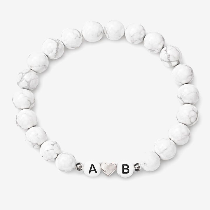Marmoriertes Armband mit Initialen, silberne Komponenten
