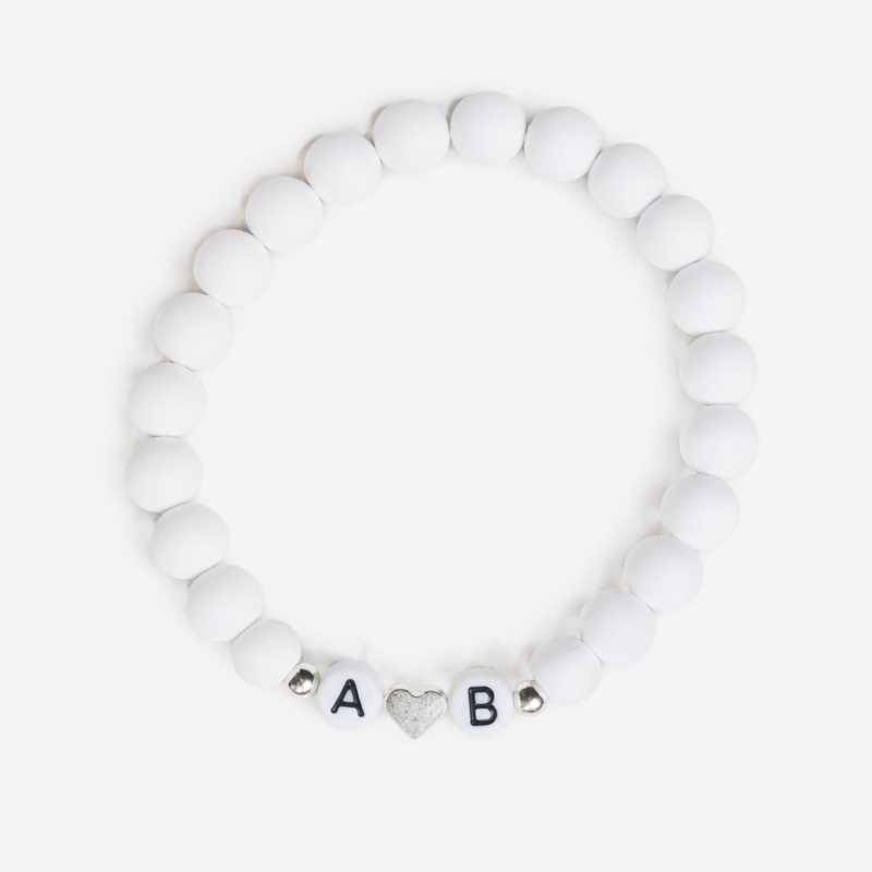Mattweißes Armband mit Initiale, silberne Komponenten